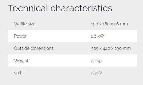 The plates of the electric waffle machine are made of cast-iron. The use of a cast-iron plate with a high conduction value makes it possible to spread the heat evenly and to obtain well-gold and crispy waffles in just 3 minutes. This professional waffle maker is meant for intensive use.